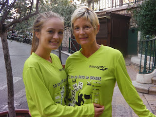The day dawned last Sunday, sunny and a bit too warm for running at 75 degrees, and off we set for Grasse old town along with 1899 other mad souls. I was a bit jaded, the result of a ridiculously late night at Ecole des Filles with friends. We were so busy chatting that I forgot about getting an early-ish night and only having one glass of wine and suddenly it was 1am, the wine was still flowing and I had the prospect of less than 8 hours sleep....not the best preparation for a race.